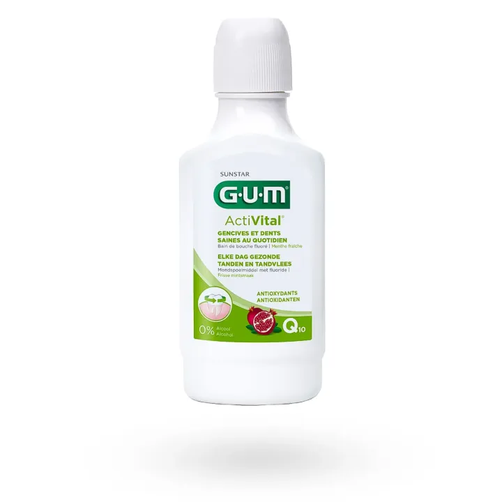 Le bain de bouche GUM ActiVital est recommandé pour compléter l’hygiène bucco-dentaire quotidienne et protéger les dents et les gencives.