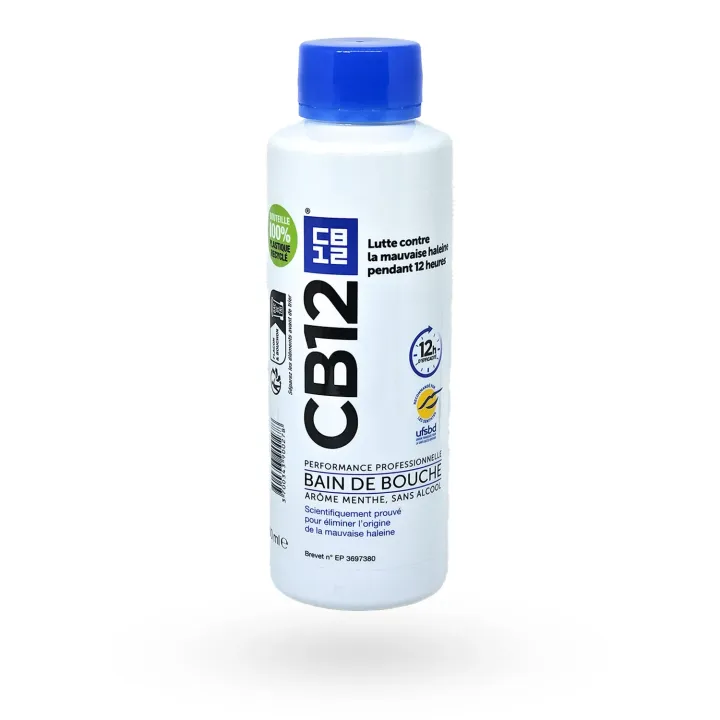 Le bain de bouche CB12 est sans alcool, ce qui le rend mieux toléré, notamment chez les personnes ayant une sensibilité buccale.