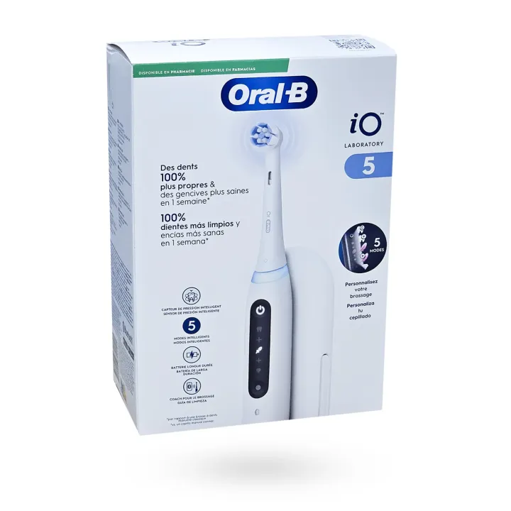 Nos pharmaciens recommandent la Oral-B iO Série 5 aux personnes souhaitant améliorer significativement leur hygiène bucco-dentaire, notamment en cas de gencives sensibles ou de plaque persistante.