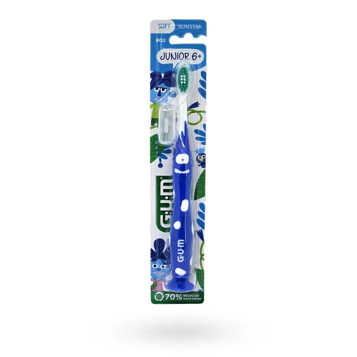 La GUM Junior 6+ 902 est une brosse à dents enfant souple spécialement conçue pour les enfants de 6 à 9 ans.