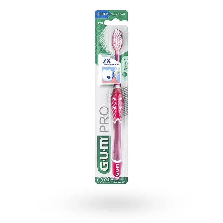 La GUM Pro 528 est une brosse à dents medium conçue pour offrir un nettoyage en profondeur des dents et des gencives.