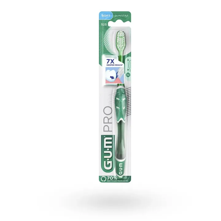 La GUM Pro 525 brosse à dents souple est spécialement conçue pour offrir un nettoyage en profondeur tout en douceur.