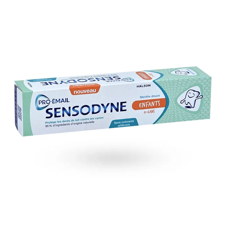 Le dentifrice Sensodyne Pro-Émail enfants 0-6 ans menthe douce est spécialement formulé pour protéger les dents de lait et renforcer l’émail fragile des enfants.