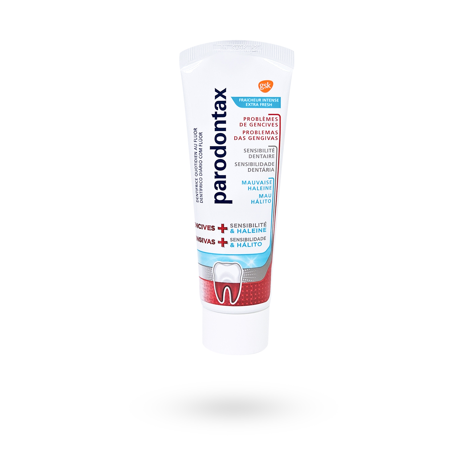 Le dentifrice Parodontax Gencives + sensibilité & haleine fraîcheur intense a été développé pour répondre à ces problématiques en associant des agents anti‑gingivite, anti‑sensibilité et rafraîchissants.
