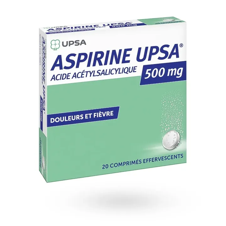 Aspirine UPSA 500 mg comprimé effervescent est indiquée en cas de douleur et/ou de fièvre.