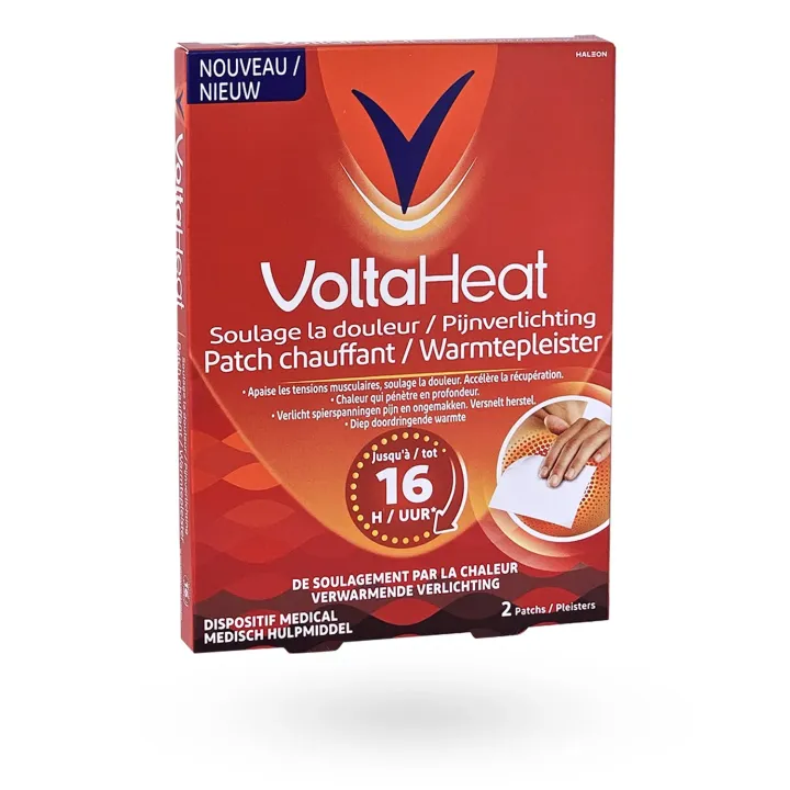 VoltaHeat patch chauffant douleurs musculaires 2 patchs est un dispositif pratique conçu pour apporter une chaleur douce et prolongée sur une zone douloureuse.