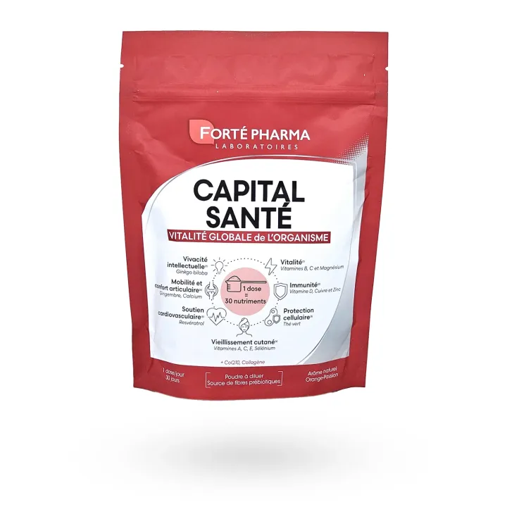 Capital Santé Vitalité Globale de l’Organisme Forté Pharma est un complément alimentaire en poudre formulé pour agir sur la vitalité globale, l’énergie physique et intellectuelle, les défenses immunitaires et l’équilibre digestif.