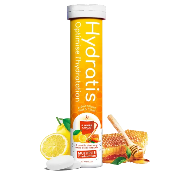 Hydratis Miel Citron propose une solution innovante et réconfortante : des pastilles effervescentes à diluer dans de l’eau chaude, spécialement formulées pour optimiser l’hydratation, soutenir l’organisme et offrir une expérience gustative douce et apaisante.
