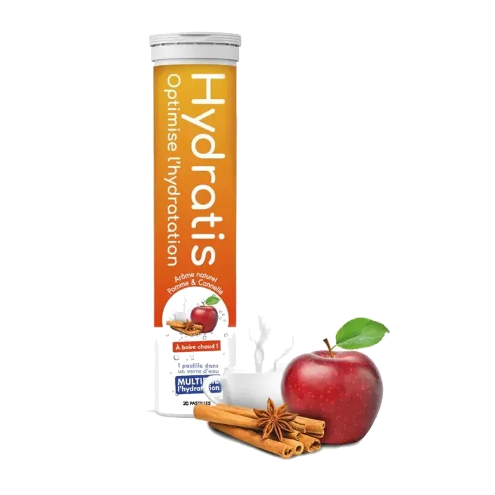 Hydratis Pomme Cannelle apporte une solution innovante grâce à ses pastilles effervescentes à boire chaud, combinant hydratation optimisée et moment réconfortant.