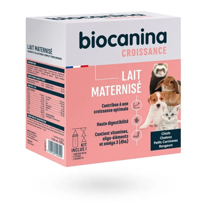 Pour élever des nouveau-nés (chiots et chatons), le lait maternisé Biocanina est spécialement adapté et indispensable.