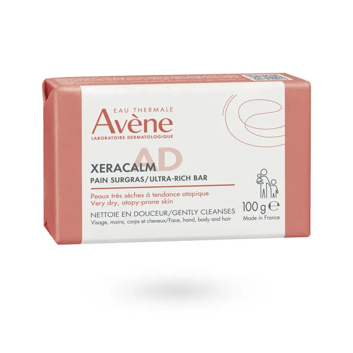 Le pain surgras nettoyant XeraCalm A.D Avène est un pain dermatologique sans savon spécialement formulé pour nettoyer en douceur les peaux très sèches, à tendance atopique et sujettes aux démangeaisons.