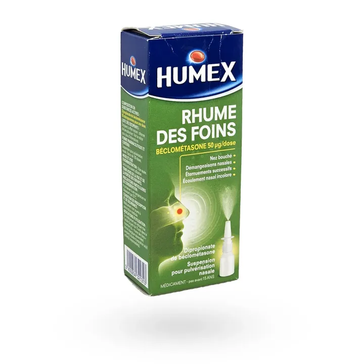 Humex Rhume des Foins 50 microgrammes/dose est un spray nasal anti-allergique à base de béclométasone, destiné au traitement du rhume des foins chez l’adulte.