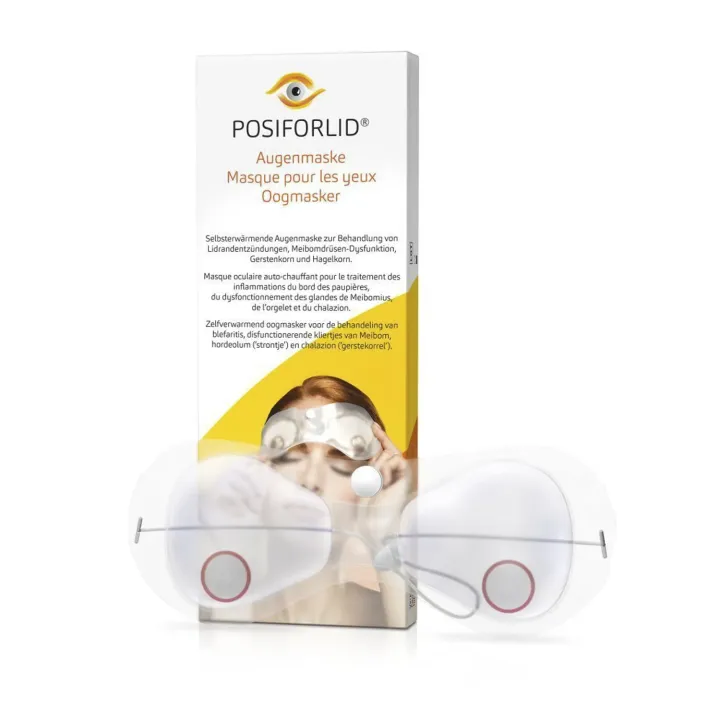 Le Posiforlid masque auto-chauffant yeux est un dispositif médical innovant conçu pour le traitement thermique des paupières en cas de blépharite, de dysfonctionnement des glandes de Meibomius, d’orgelets ou de chalazions.