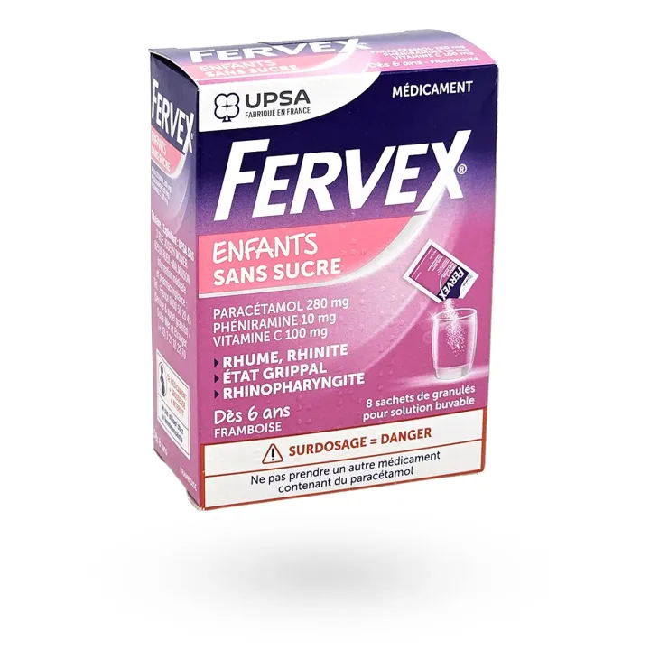 Fervex enfants est un médicament contre le rhume des laboratoires UPSA.