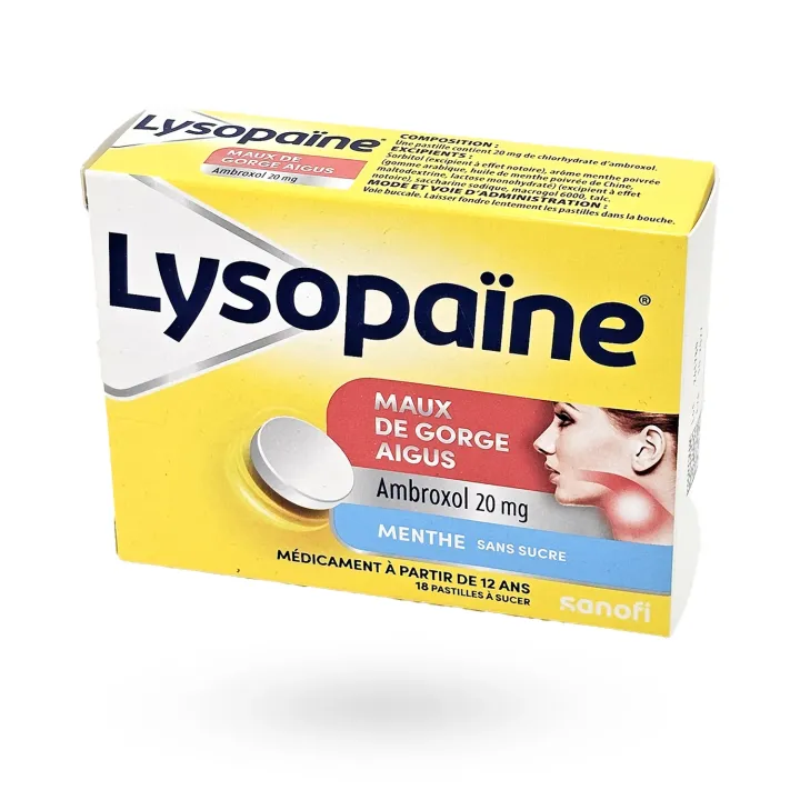 L’ambroxol est connu comme molécule utilisée dans d’autres indications respiratoires, mais dans cette forme de pastille, son intérêt principal est son effet anesthésique local au niveau de la muqueuse oro-pharyngée.