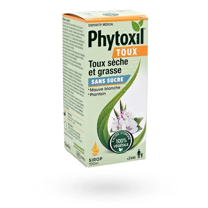 Le Phytoxil Toux sèche & grasse sirop sans sucre 100 ml est un dispositif médical formulé pour soulager efficacement la toux chez l’adulte et l’enfant dès l’âge de 2 ans.
