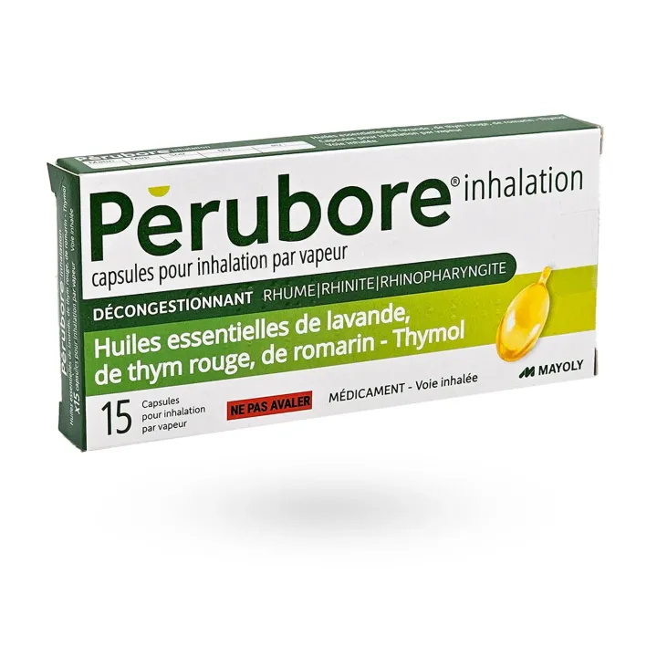 Pérubore Inhalation capsules pour inhalation par vapeur est un médicament décongestionnant des voies respiratoires à base d’huiles essentielles.