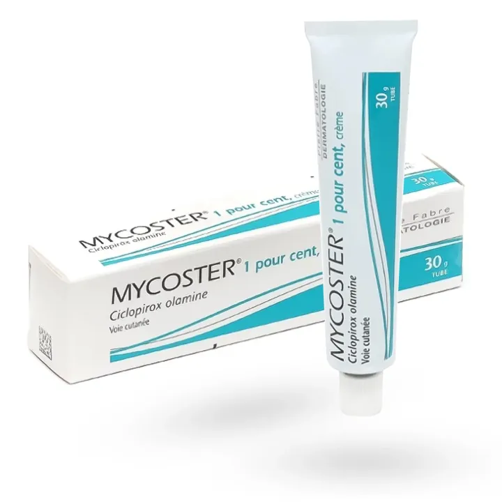 MYCOSTER 1% Crème – Tube 30 g est un antifongique topique à base de Ciclopirox olamine, indiqué pour traiter les mycoses cutanées, unguéales et la dermatite séborrhéique.