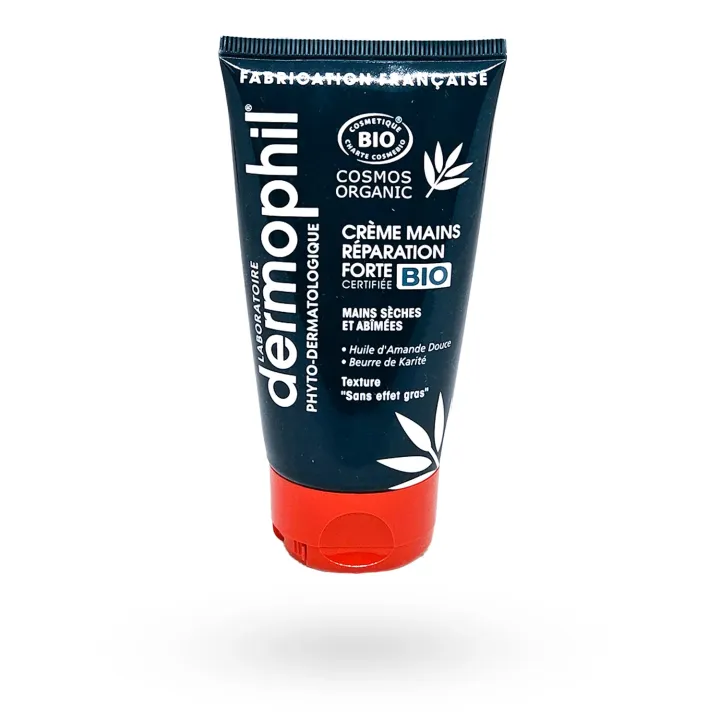 La crème mains sèches et abîmées réparation forte BIO Dermophil est un soin réparateur intensif, idéal pour hydrater, réparer et protéger les mains fragilisées.